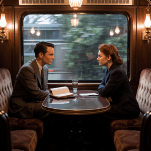 El reloj marcaba las doce cuando el viejo tren nocturno siseó en la estación silente. Las farolas titilaban en círculo, proyectando sombras largas…