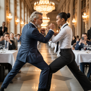 El zapato de cuero pulido del Dr. Cointon cortó el aire iluminado por las arañas de cristal como una daga negra. Un segundo…