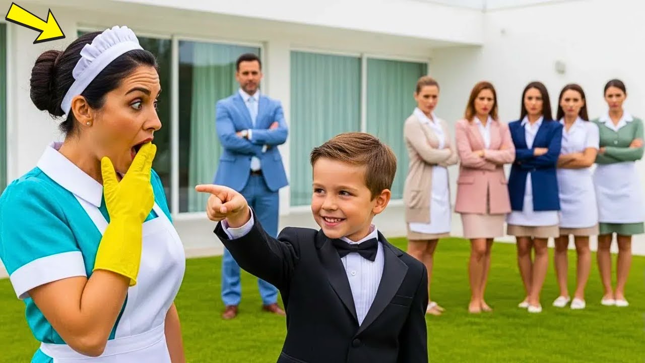 Leo, pequeño y callado con su traje caro, escuchaba las presentaciones ensayadas con expresión aburrida. Cuando Elias finalmente preguntó: “¿Y bien, hijo? ¿Quién crees que será la mejor para cuidarte?”, Leo ni siquiera miró la fila de mujeres profesionales.