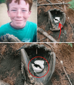 Mientras se movían a través de la maleza, uno de los cazadores tropezó con un objeto pequeño, parcialmente cubierto por hojas y barro. Al desenterrarlo, se dio cuenta de lo que era: un guante de béisbol, de un color azul brillante, desgastado por el tiempo y la exposición a los elementos. El guante no parecía un objeto olvidado al azar. Su tamaño era infantil, y en el cuero descolorido se distinguían unas iniciales mal bordadas.