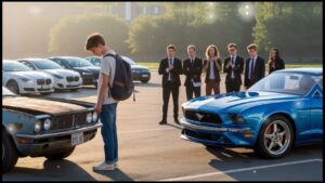 El joven conductor, consciente de las miradas y las risas, mantuvo la calma. Se bajó del coche, cerró la puerta con un sonido metálico y se dirigió a la entrada. Su actitud no era de vergüenza, sino de una tranquila indiferencia, lo que tal vez irritó aún más a sus críticos.