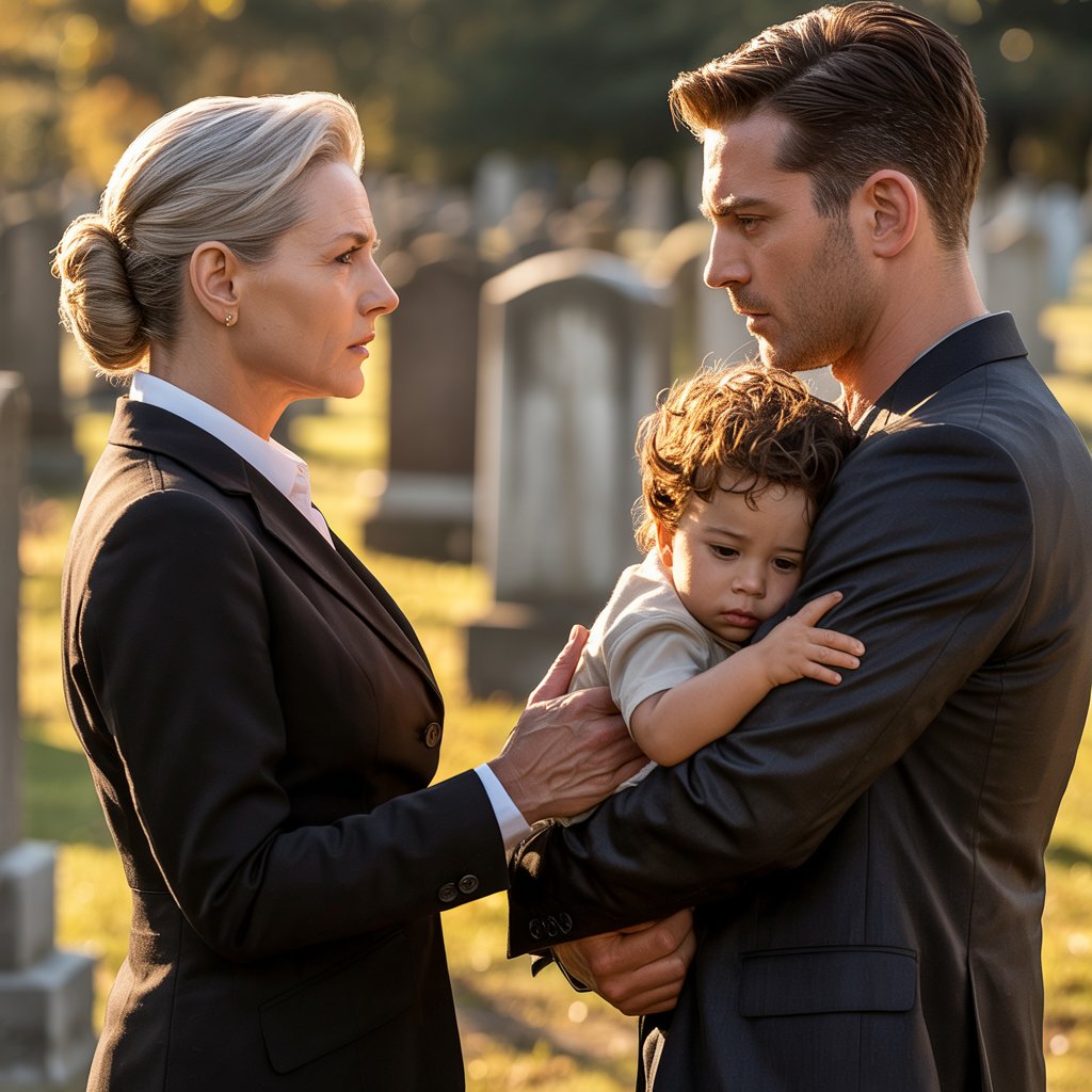 Había un hombre arrodillado frente a la tumba de Clara, un hombre que ella nunca había visto. Parecía mexicano, con el rostro marcado tanto por la fatiga como por un dolor profundo. En sus brazos sostenía a un niño pequeño, un varoncito de pocos años, con la cabeza apoyada en su hombro, como si estuviera exhausto de tanto llorar.