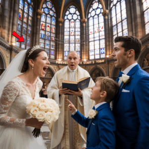 Pero la perfección es frágil. Bastó la voz temblorosa de un niño para que las máscaras cayeran y el lujo se transformara en un escenario de escándalo. Lucas Carter, de apenas ocho años, el hijo del novio, se levantó en el preciso instante en que el sacerdote pronunció las palabras solemnes: “Si alguien tiene un motivo para impedir esta unión, hable ahora o calle para siempre”.