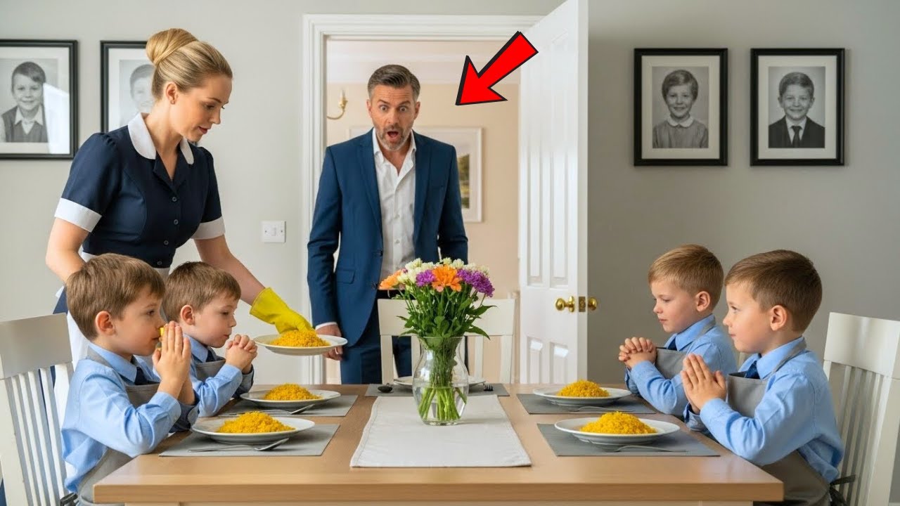 El sol de mediodía era un foco dorado. Bajo esa luz, Marina Robledo. Su joven empleada. Sirviendo arroz dorado a cuatro pequeños de cabello revuelto. Niños. Reían. Mejillas manchadas de cúrcuma. Vapor tierno en el aire.