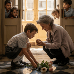 La señora bajó por la escalera del edificio con un ramo de flores recién cortadas, deseando que el aroma y los colores iluminaran…