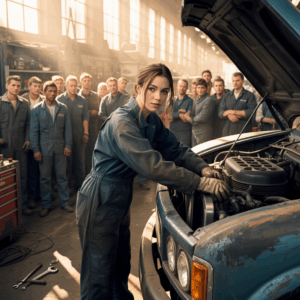 El sol golpeaba con fuerza sobre el taller, haciendo que el metal de los vehículos brillara como si ardiera. Allí estaba él, un…