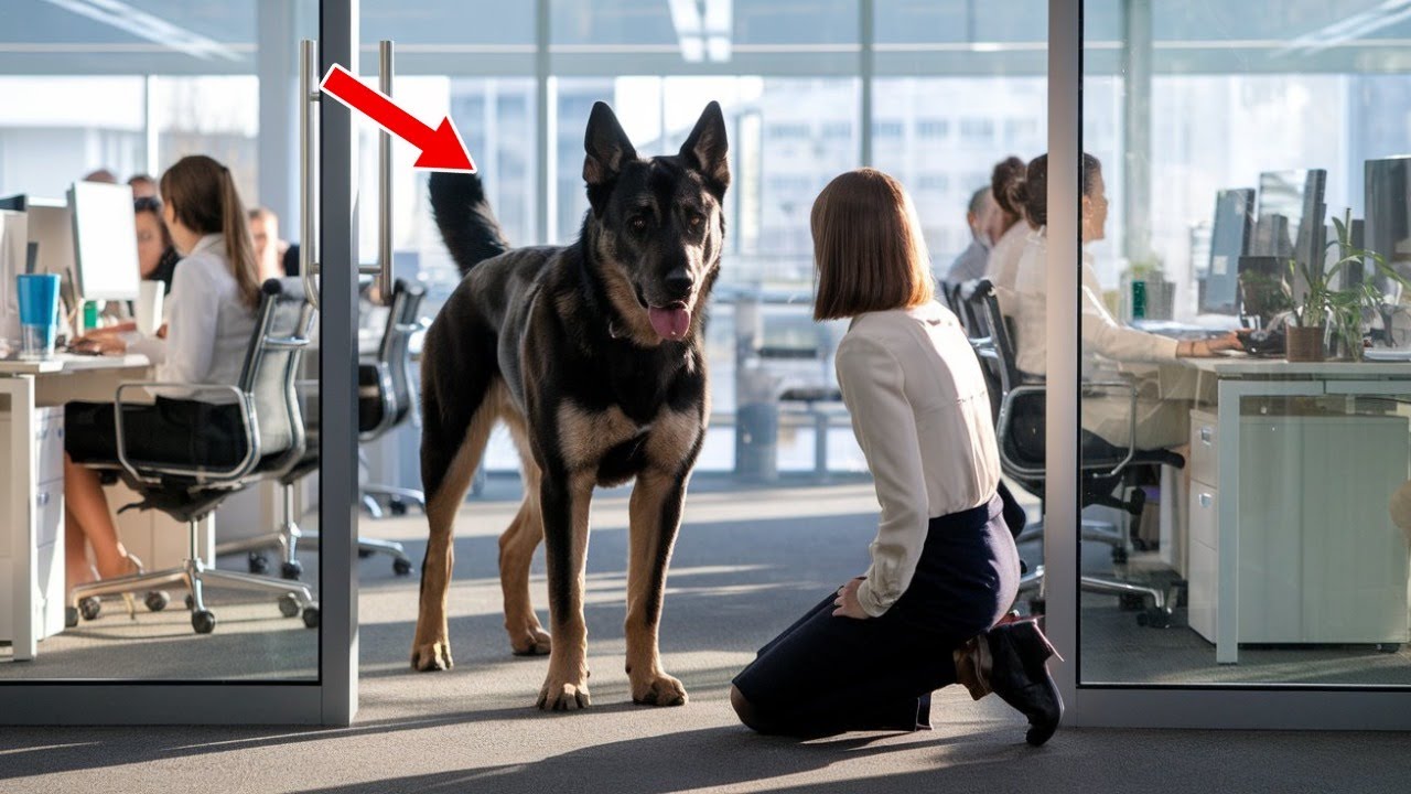 El lunes había comenzado con la monotonía habitual de cualquier oficina: el suave clic de los teclados, el aroma del café recién hecho y las conversaciones a media voz. Sin embargo, aquel día, la rutina se hizo añicos con el estruendo de unas puertas de vidrio al abrirse de golpe, anunciando la entrada más inusual y dramática que nadie había presenciado. En el umbral, con el pelaje sucio, los ojos desorbitados por el miedo y un jadeo gutural, se encontraba Max, un imponente Pastor Alemán.